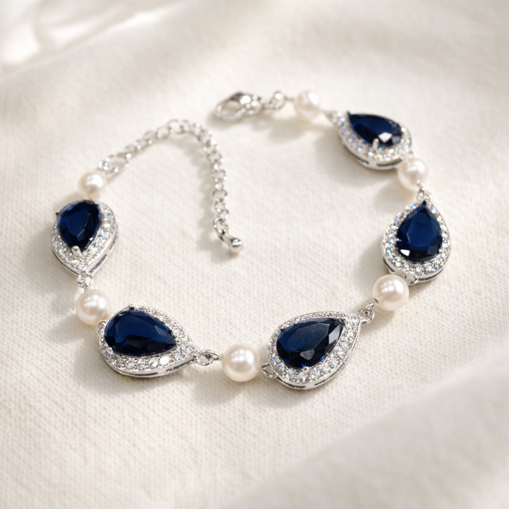Bridal Sapphire Teardrop Bracelet Something Blue Jewlery